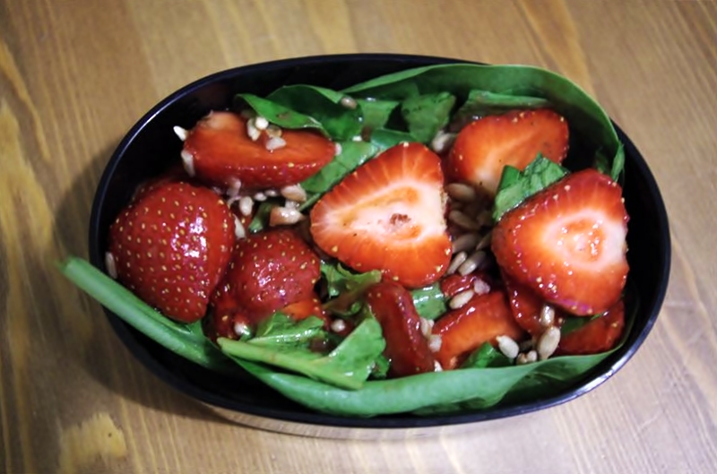 Szybkie bento na chwilę lub dwie w parku. Korzystając jeszcze z tego, że polskie truskawki są, postanowiłam w końcu zrobić sałatkę, o której już czytałam tutaj i tutaj.
